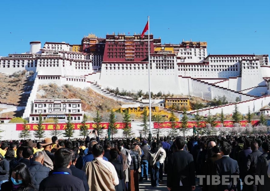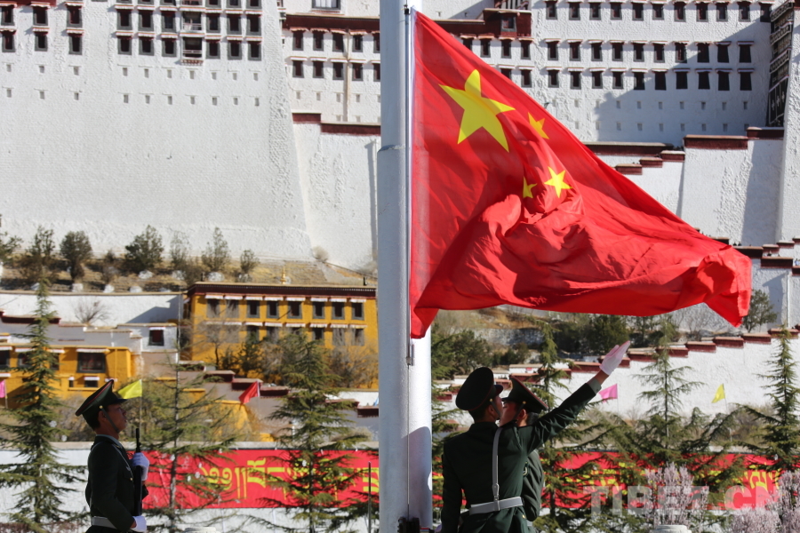 圖為2025年3月28日,國(guó)旗在布達(dá)拉宮廣場(chǎng)升起 攝影:旦曲
