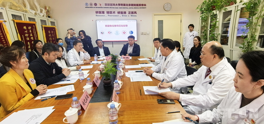 圖為北京朝陽醫(yī)院骨科團隊向“同心·共鑄中國心”組委會執(zhí)行主席金大鵬,北京朝陽醫(yī)院黨委書記、理事長紀智禮,北京朝陽醫(yī)院院長李海潮等介紹患兒病情、手術(shù)及恢復情況 攝影:劉莉
