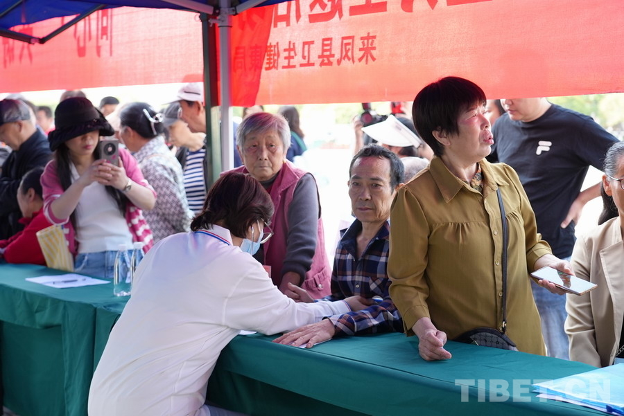 中國(guó)西藏網(wǎng)訊 4月18日,“同心·共鑄中國(guó)心”大型公益醫(yī)療服務(wù)活動(dòng)走進(jìn)湖北省恩施土家族苗族自治州來(lái)鳳縣。來(lái)自北京的10名醫(yī)療專家組成的聯(lián)合義診團(tuán)隊(duì),在喳西泰廣場(chǎng)為當(dāng)?shù)厝罕娞峁┙】底稍?、疾病篩查及個(gè)性化診療服務(wù)?;顒?dòng)現(xiàn)場(chǎng),專家們耐心解答群眾健康問(wèn)題,針對(duì)常見(jiàn)病、慢性病進(jìn)行細(xì)致篩查,并提出專業(yè)診療建議。(中國(guó)西藏網(wǎng) 記者/蘇洋)