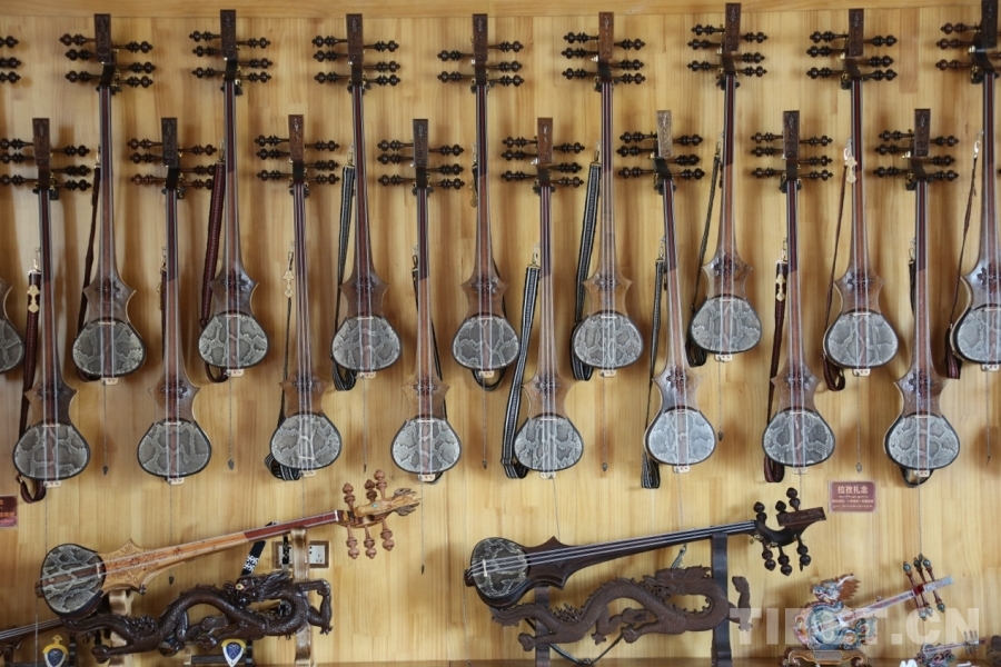 作為“堆諧之鄉(xiāng)”拉孜縣的代表性樂器,扎念琴制作已有數(shù)百年歷史。合作社負責人頓加介紹,一把純手工扎念琴需選用楊木做共鳴箱、花梨木制琴桿,經(jīng)過刨削、雕鏤、蒙皮等20余道工序,一個人耗時6天左右方能完成?!扒兕^雕馬象征吉祥,背面‘巴絡'凸紋既美觀又防滑,這些都是祖輩傳下的智慧?!比缃瘢@項非遺技藝通過“致富帶頭人+合作社+農(nóng)戶”模式,年生產(chǎn)扎念琴超500把,帶動社員人均年收入達4.5萬元。