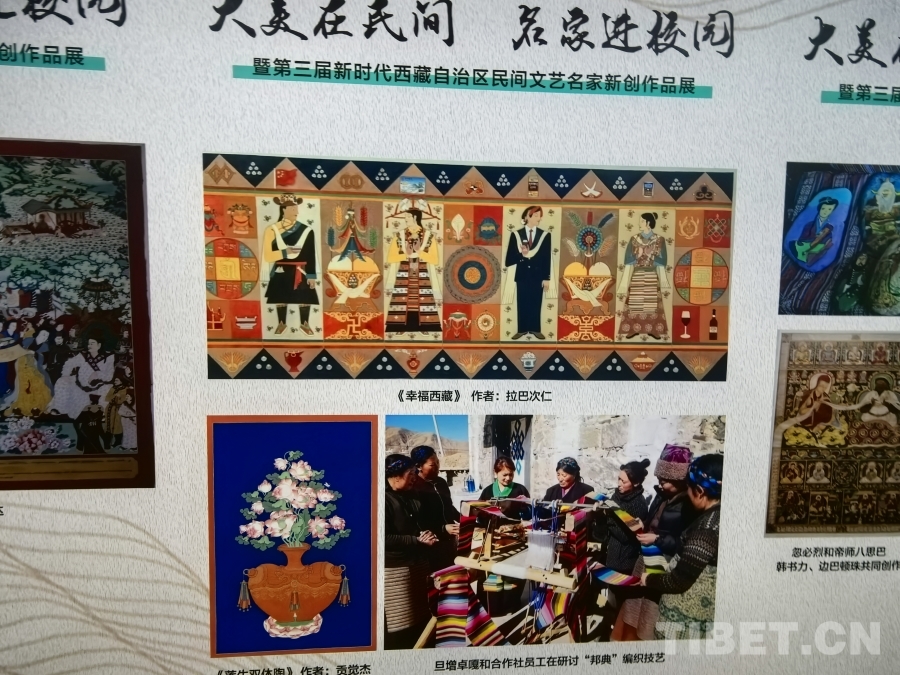 中國西藏網訊 韓書力、次仁平措、普布多吉、羅布斯達......一個個浸潤書香、渲染色彩的名字在“大美在民間——名家進校園暨第三屆新時代西藏自治區(qū)民間文藝名家新創(chuàng)作品展”上熠熠發(fā)光,展覽所在地西藏大學,師生們在展廳中流連駐足,認真觀展,不時交頭細語,分享感受。