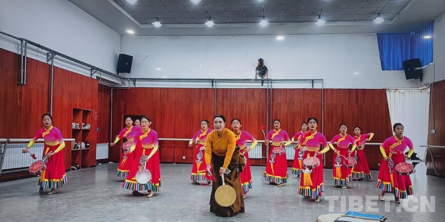 6月20日,“大美在民間——名家進校園暨第三屆新時代西藏自治區(qū)民間文藝名家新創(chuàng)作品展”開展。圖為西藏大學舞蹈教師教授西藏傳統(tǒng)舞蹈 翻拍:趙釗