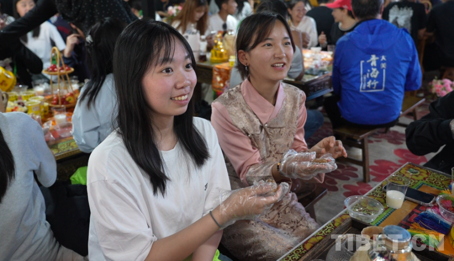 圖為香港學(xué)生和青海學(xué)生展示制作的糌粑 攝影:王茜