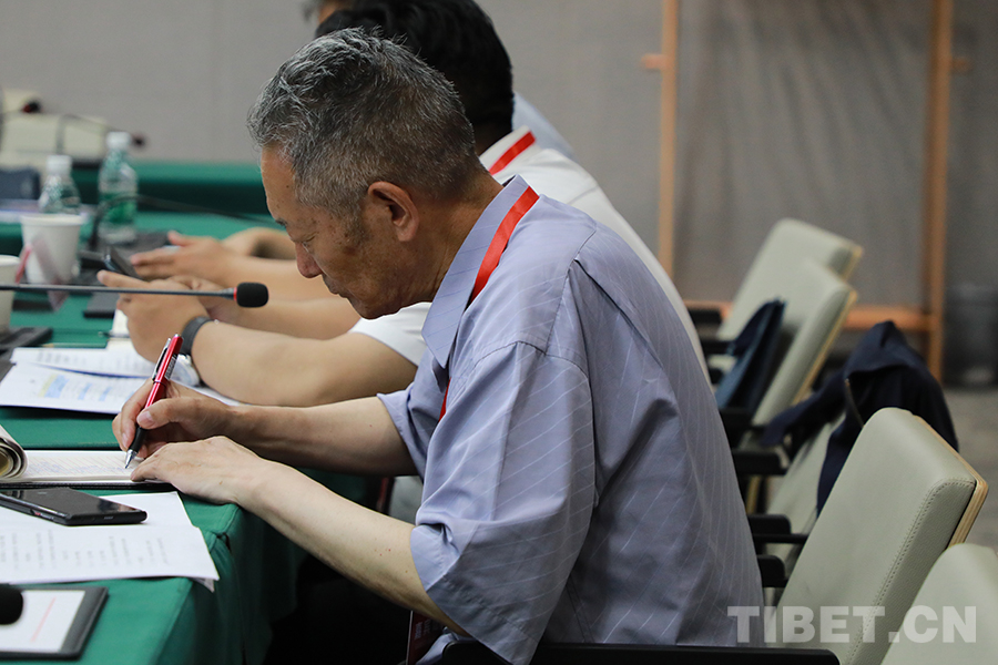 圖為座談會上,西藏自治區(qū)昌都市政協(xié)副主席圖嘎介紹昌都舊城改造相關(guān)工作 攝影:楊月云