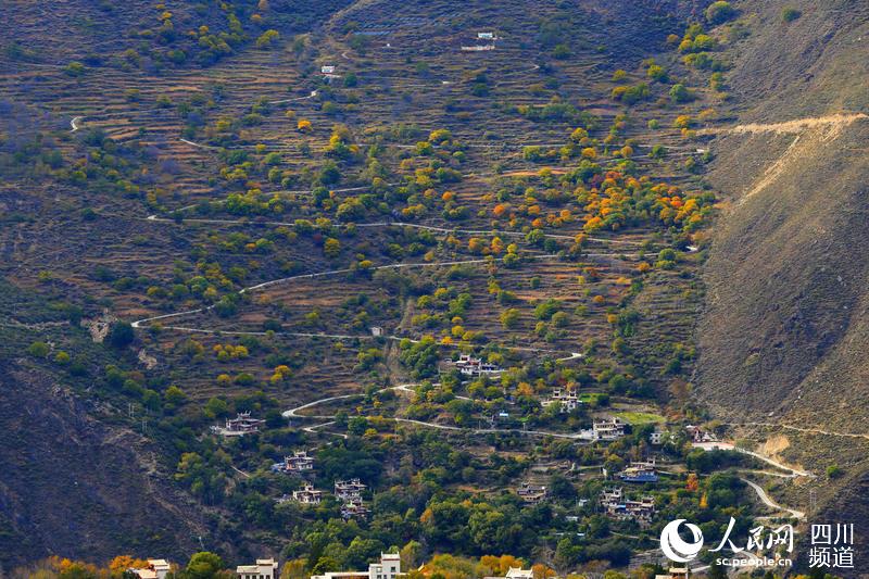 丹巴縣蜿蜒曲折的通村路。李永安 攝
