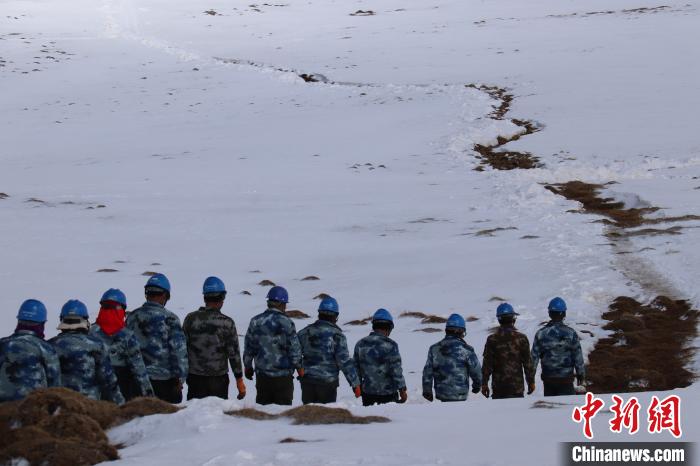 圖為“三區(qū)兩州”玉樹(shù)地區(qū)電網(wǎng)工程建設(shè)稱(chēng)多110千伏輸變電二回線(xiàn)路施工現(xiàn)場(chǎng),施工人員正在鏟除厚重的積雪,為前往施工現(xiàn)場(chǎng)開(kāi)路。徐曉韜 攝