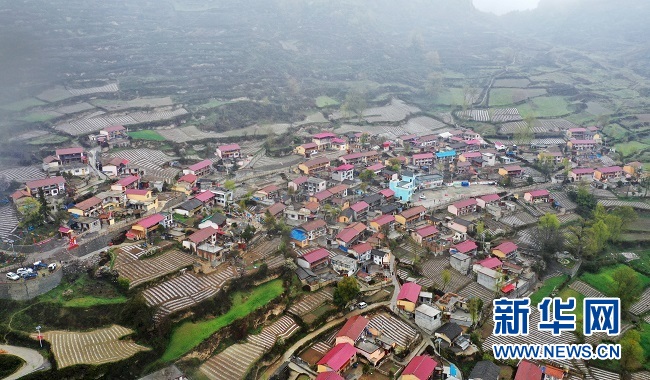 汽車從縣城出發(fā),沿山路蜿蜒而上,一直“往云深處走”。行車近兩個小時,穿越山中層層繚繞薄霧,眼前逐漸顯現(xiàn)一片開闊山塬——一座座色彩鮮明的藏式房屋錯落有致,鑲嵌在青山云霧之間,宛若一幅秀美的畫卷。