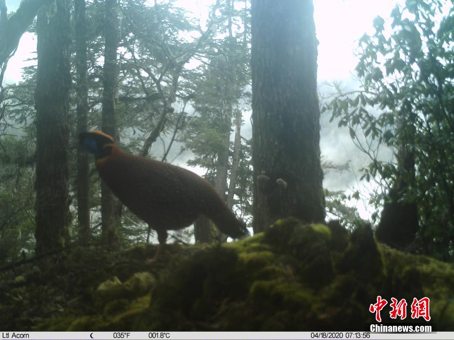 紅外相機(jī)拍攝到的紅腹角雉影像。九寨溝縣委宣傳部供圖