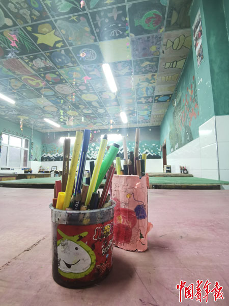 滿(mǎn)掌鄉(xiāng)小學(xué)有專(zhuān)門(mén)的音樂(lè)課和美術(shù)課教室,音樂(lè)教室里有鋼琴和電子琴,還有個(gè)沒(méi)人彈過(guò)的古箏。美術(shù)教室布置得極熱鬧,天花板上都有老師和學(xué)生們的涂鴉。