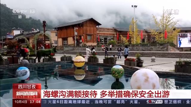 節(jié)日期間的海螺溝景區(qū)晴空萬里,海拔6410米的貢嘎山金銀峰,在藍(lán)天白云映襯下更顯巍峨壯麗。