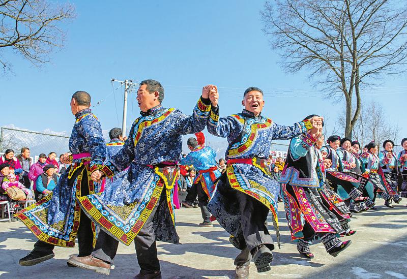 阿壩州理縣佳山村村民載歌載舞,歌唱美好新生活。李燊 攝