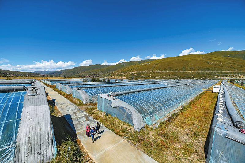 爐霍縣斯木鎮(zhèn)吉絨村飛地產業(yè)園區(qū),按照“土地集中、各村飛地、龍頭經營、入股分紅”思路建起的蔬菜大棚基地。四川日報 楊樹 攝