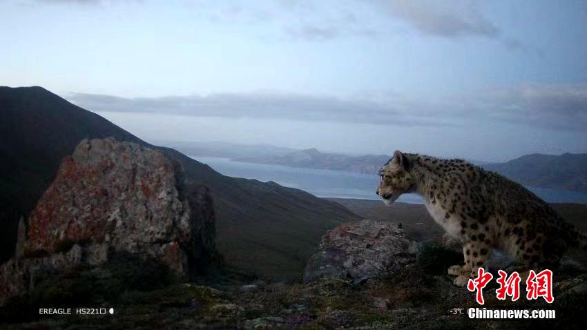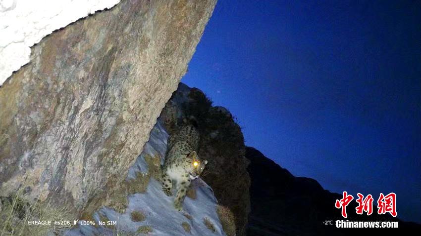 圖為相機(jī)夜幕下抓拍到的雪豹活動(dòng)畫面。青海原上草自然保護(hù)中心供圖