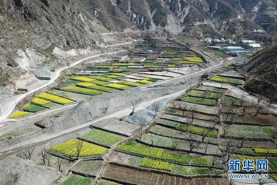 這是3月17日在舟曲縣城關(guān)鎮(zhèn)境內(nèi)拍攝的油菜花(無人機(jī)照片)。新華社記者 范培珅 攝