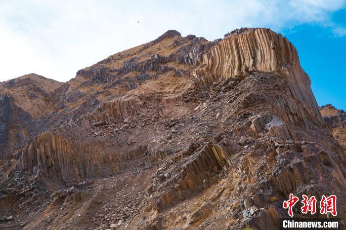 青海發(fā)現(xiàn)距今2.2億年火山巖柱狀節(jié)理群 酷似“巨锏”立山巔
