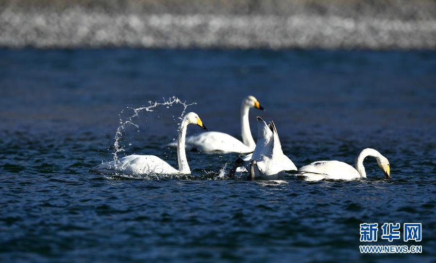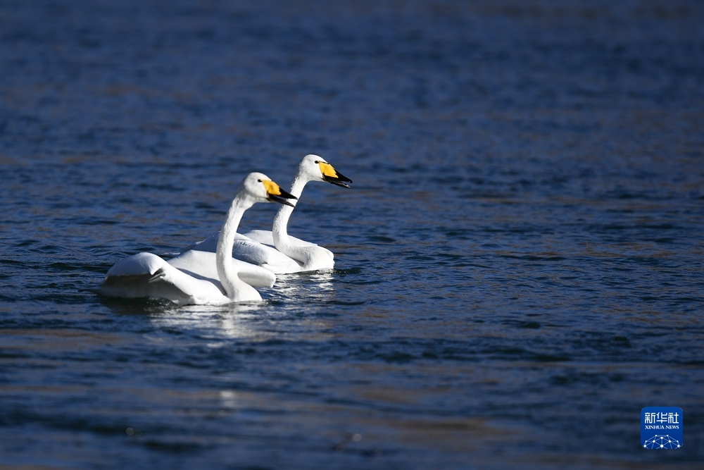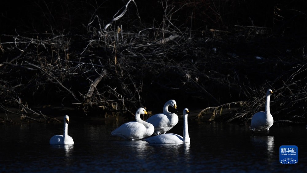 近日,前來(lái)越冬的近百只天鵝在青海省海南藏族自治州貴德縣境內(nèi)的黃河濕地覓食休憩,為冬日黃河帶來(lái)勃勃生機(jī)。近年來(lái),青海省加大力度保護(hù)治理境內(nèi)黃河流域,改善當(dāng)?shù)厣鷳B(tài)環(huán)境,為越冬候鳥提供良好棲息地。