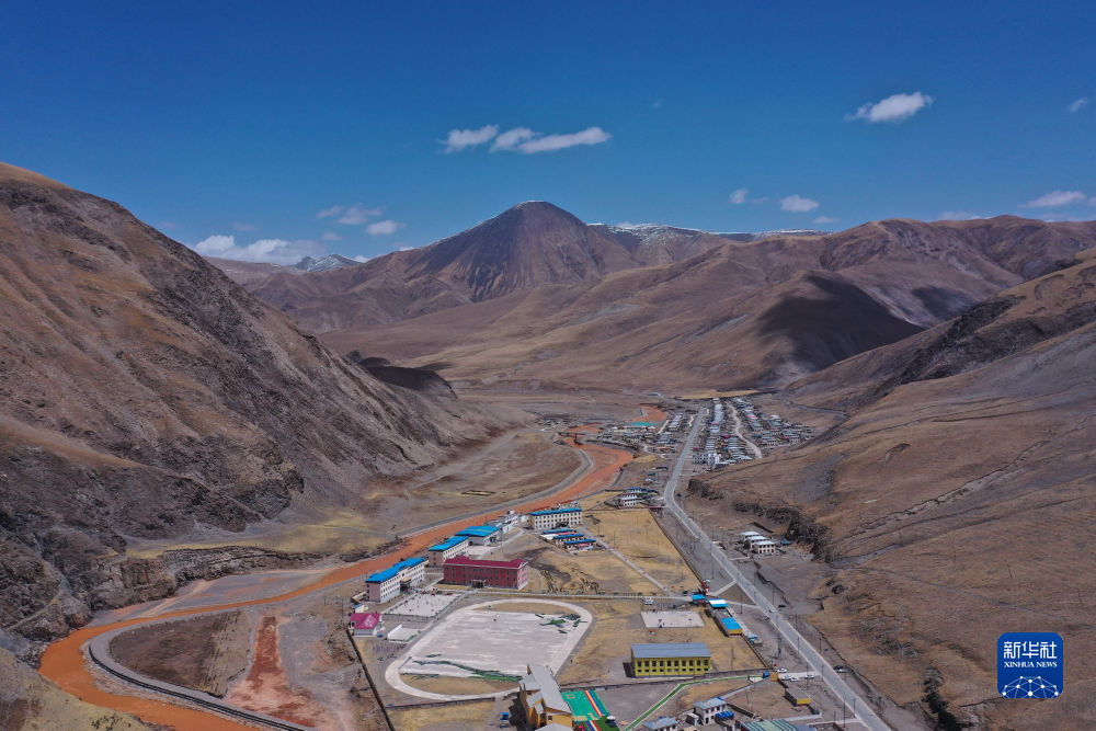 這是4月22日在青海省玉樹藏族自治州曲麻萊縣拍攝的巴干鄉(xiāng)寄宿制小學(無人機照片)。新華社記者 張龍 攝