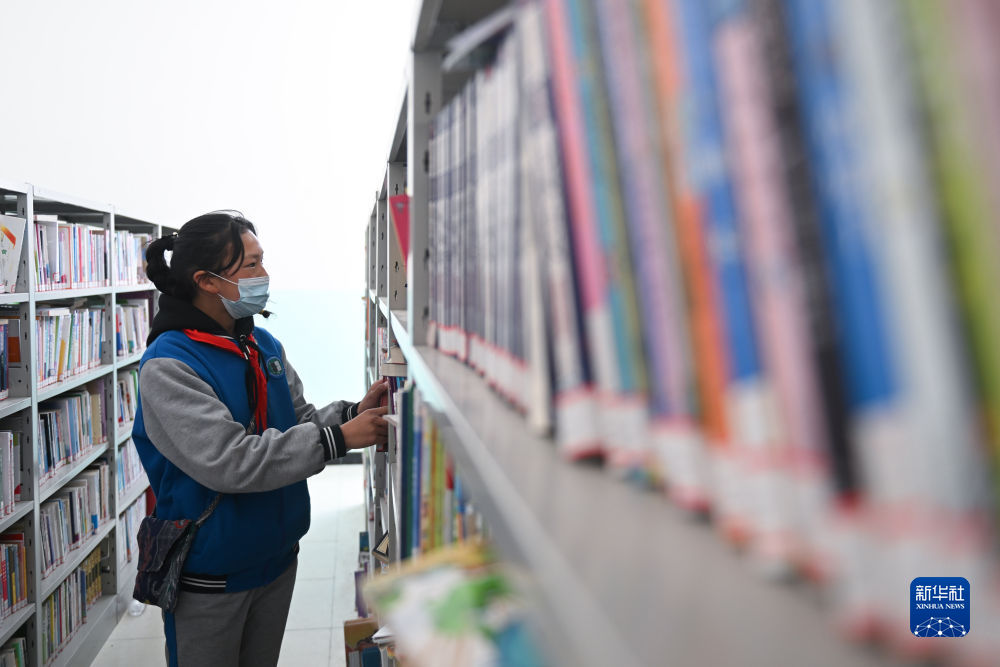 4月22日,青海省玉樹藏族自治州曲麻萊縣巴干鄉(xiāng)寄宿制小學的學生在圖書室借閱圖書。新華社記者 張龍 攝