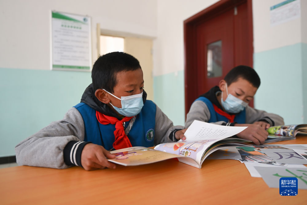 4月22日,青海省玉樹藏族自治州曲麻萊縣巴干鄉(xiāng)寄宿制小學的學生在圖書室內(nèi)閱讀。新華社記者 張龍 攝