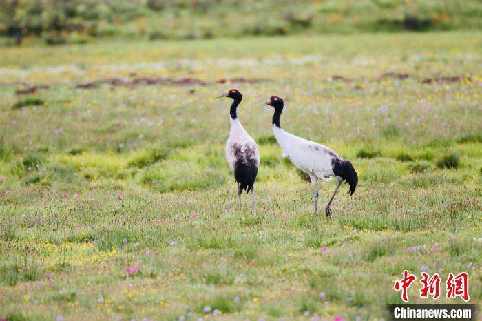 圖為瑪可河國家濕地公園內(nèi)的黑頸鶴。班瑪縣委宣傳部 供圖