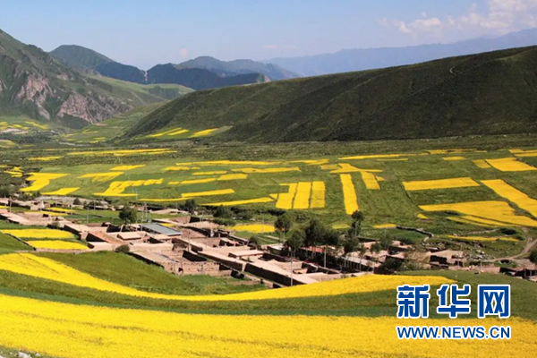(資料圖)田間,一塊塊油菜地花開(kāi)正艷。新華網(wǎng)發(fā)