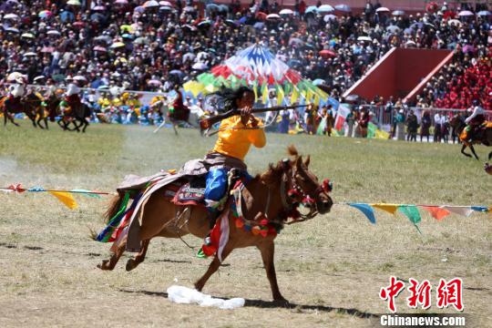 每年夏季,該縣各鄉(xiāng)村藏族民眾都會舉行精彩的賽馬、賽牦牛、背沙袋等民族傳統(tǒng)體育賽事。