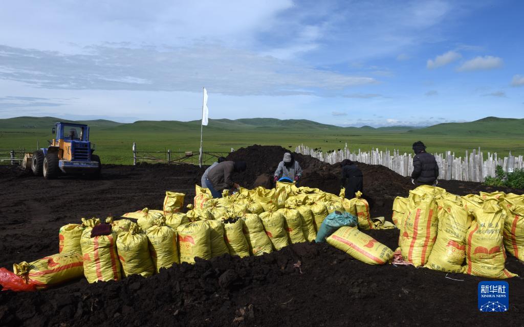 7月14日,巴周一家在出售牦牛糞。牦牛糞是可用于農(nóng)作物種植和園林綠化領(lǐng)域的優(yōu)質(zhì)肥料。新華社記者 陳?ài)?攝
