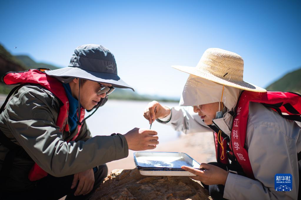 7月24日,長江科學(xué)院科考隊(duì)員在瀾滄江源區(qū)的雜多進(jìn)行水生生物樣本采集。新華社記者 肖藝九 攝