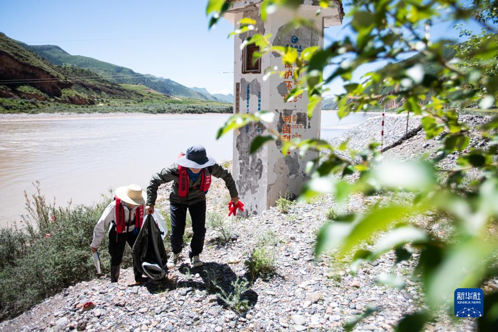7月24日,長江科學(xué)院科考隊(duì)員在瀾滄江源區(qū)的雜多進(jìn)行科考工作。新華社記者 肖藝九 攝