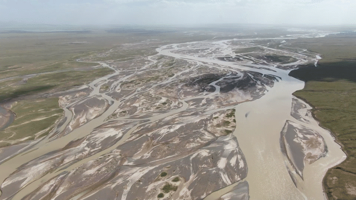 周銀軍說(shuō),在青藏高原上,江源河床下多是凍土,河水很難向下侵蝕。加上兩岸沒(méi)有山體形成自然約束,也不像平原地區(qū)修建堤防、護(hù)岸等水利工程,長(zhǎng)江源地區(qū)河流水量大、水流快時(shí),河道沖刷以橫向變形為主,因此河床呈現(xiàn)千變?nèi)f化狀態(tài)。