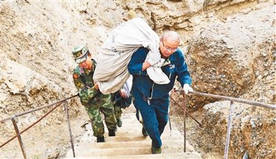 上橋,有兩條路線:一是開(kāi)車走盤山“搓板路”,路遠(yuǎn)難行還危險(xiǎn);二是徒步爬一條直通橋上的水泥臺(tái)階,150級(jí),坡度近70度,被執(zhí)勤部隊(duì)官兵形容為“天梯”。高海拔下,二十來(lái)歲的年輕戰(zhàn)士,走“天梯”都會(huì)頭暈?zāi)垦?,?976年生人的葛軍,為節(jié)省時(shí)間,每次都選擇扛著郵包往上爬。