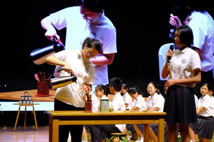 為了解答朋友的問題,兩地的孩子們還采用了多樣的方式進行細心地解答。理塘的孩子們給大家介紹了藏族特有的民族服裝,并現(xiàn)場制作展示了傳統(tǒng)藏族風味酥油茶;錢塘的孩子們則介紹了蘊含著“圍墾精神”的蕭山蘿卜干,現(xiàn)場演示了龍井茶的沖泡,并手捧琵琶伴奏演唱了《青城山下白素貞》,動聽的歌聲回蕩在屏幕前。