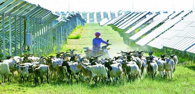 “與其花錢雇人來(lái)割草,還不如讓牧民來(lái)放羊。”朱明成回憶當(dāng)時(shí)的靈機(jī)一動(dòng)。園區(qū)邀請(qǐng)周邊牧民進(jìn)入光電園區(qū)養(yǎng)起“光伏羊”,“我們免費(fèi)修建了4座羊圈,讓‘光伏羊倌’零成本干起老本行?!?/p>