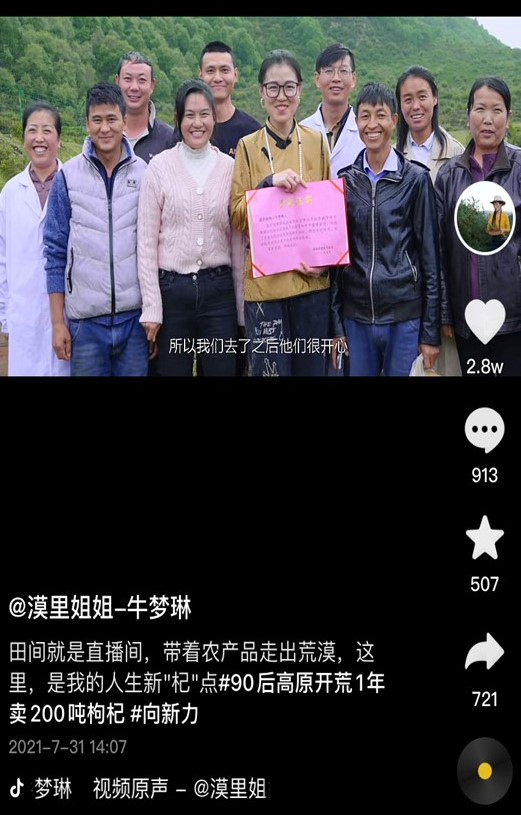 牛夢琳說:“我想通過做短視頻增加自己枸杞的銷量,同時也向大家介紹枸杞的功效,沒有中間商帶來的問題,我們從產(chǎn)地直接給顧客發(fā)貨,質量好,價格也低?!?/p>