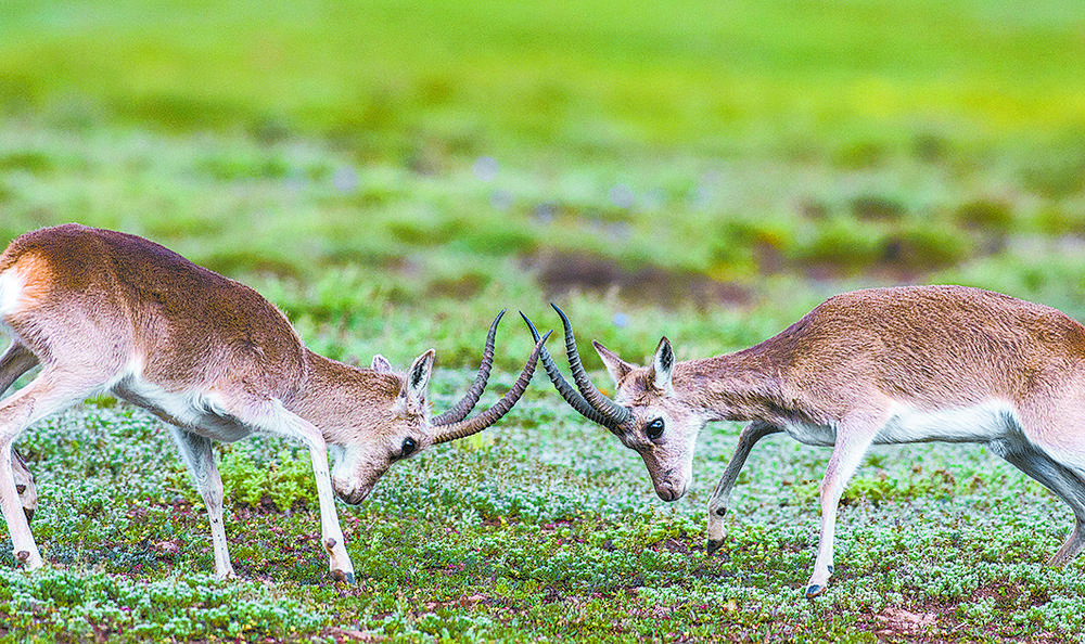 敢于破除利益藩籬,敢于啃硬骨頭,咬定目標(biāo)不放松。如今,當(dāng)600多億立方米的清潔水源從三江源大地輸送至我國及周邊東南亞國家,三江源地區(qū)水源涵養(yǎng)量年均增幅6%以上,草地覆蓋率、產(chǎn)草量分別比十年前提高11%、30%以上;野生動物明顯增多,藏羚羊由保護(hù)初期不足2萬只恢復(fù)到7萬多只,過去難得一見的雪豹、金錢豹、歐亞水獺頻頻亮相,兔猻、藏狐、白唇鹿、野牦牛、黑頸鶴繁衍生息。