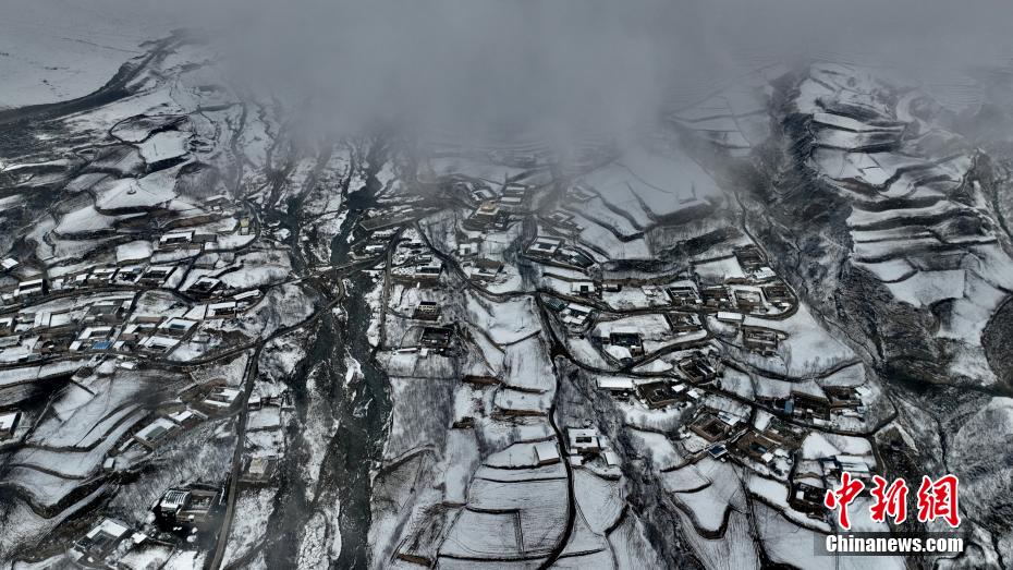 連日來,坐落在黃河岸畔的青海省海東市化隆縣雄先藏族鄉(xiāng)、查甫藏族鄉(xiāng),迎來降雪。雪后航拍藏族傳統(tǒng)村落和山區(qū)梯田,阡陌交通,加之云霧繚繞,宛如仙境。