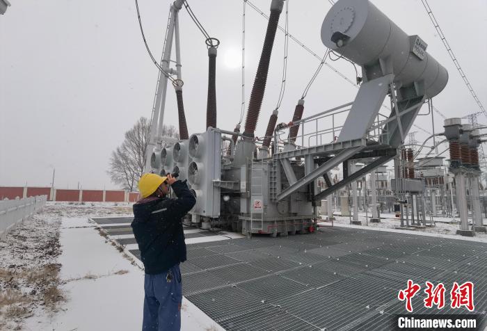 寒風(fēng)中,他們穿行在設(shè)備區(qū),看設(shè)備外觀、構(gòu)架,查壓力、瓷瓶,對(duì)設(shè)備進(jìn)行測溫,約1小時(shí)后,完成當(dāng)天的第一次全站巡視。