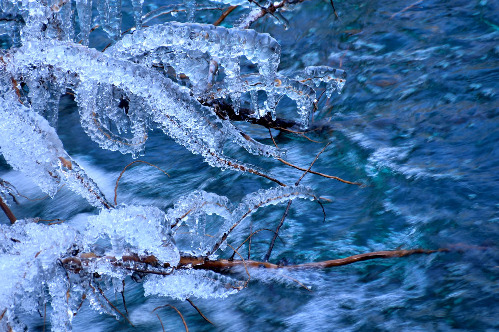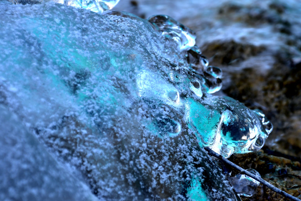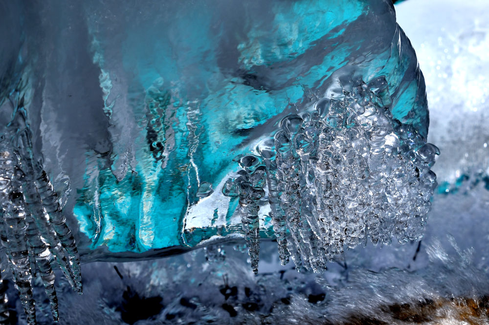 “潔凈的空氣和水是形成藍冰的基礎(chǔ)條件,隨著氣溫持續(xù)降低,冰層厚度越厚,藍冰也會格外明顯?!毙ぞS陽說。