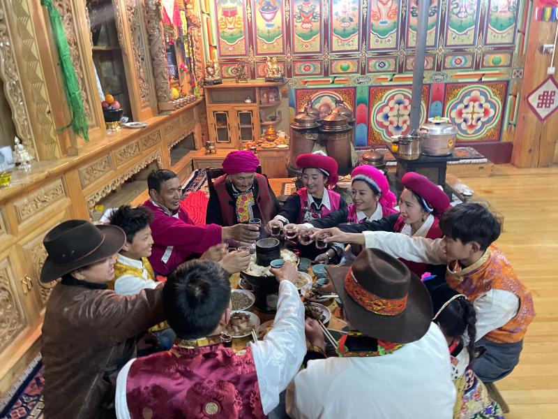在濃厚的新年氛圍里,初稱心頭的幸福感滿滿:“這幾年,在黨的好政策指引下,我們的日子真的越來越好了,去年家里經(jīng)營的房車營地賺了4萬多元,女兒在外打工,兩個孫子都在讀大學(xué),老母親身體健康,生活不用發(fā)愁……話語間,生活過得越來越滋潤的一家人舉起酒杯,“干杯,羅薩扎西德勒!(意為新年吉祥如意)”酒杯碰在一起,發(fā)出清脆的響聲,大家喜慶洋洋的在一起慶新年,說祝福,祈愿來年日子越來越紅火……