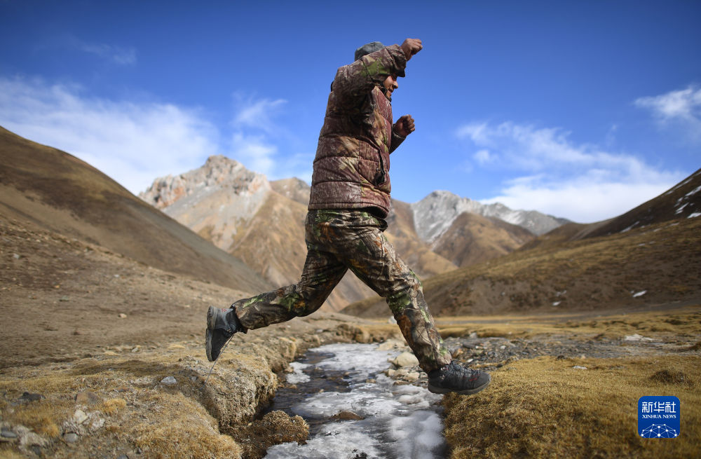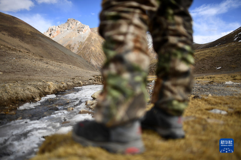 2月22日,更求曲朋在昂賽大峽谷內(nèi)巡護(hù)。新華社記者 張宏祥 攝
