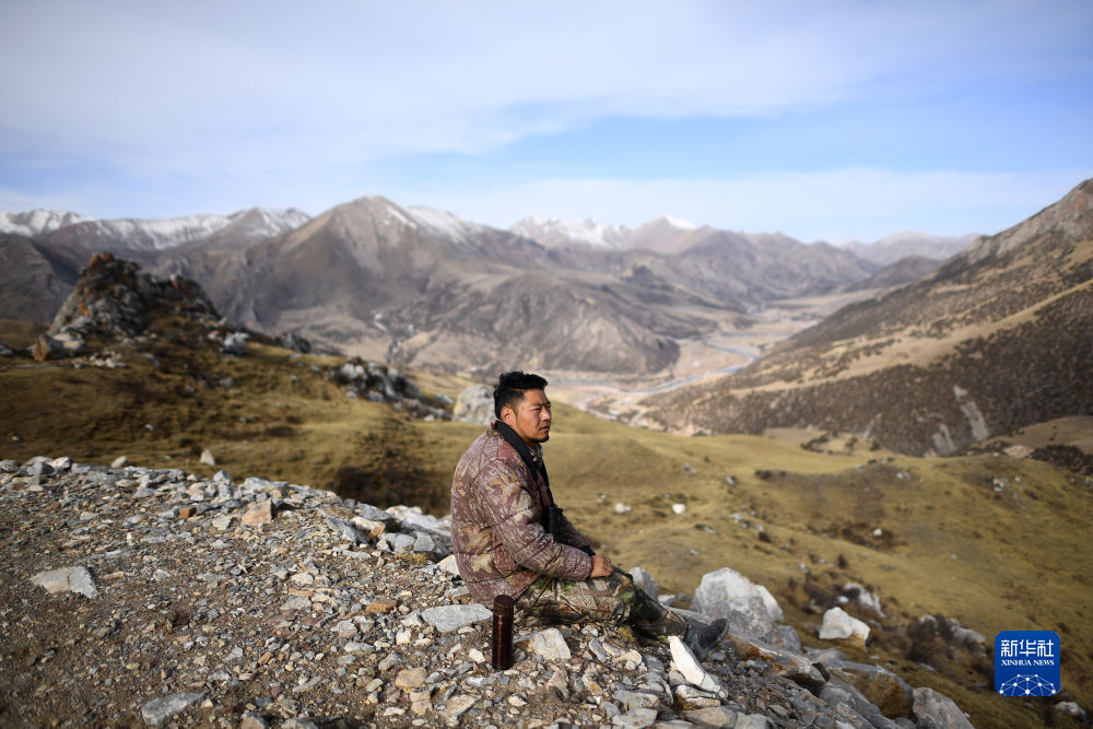 2月22日,更求曲朋在昂賽大峽谷內(nèi)巡護(hù)途中駐足。新華社記者 張宏祥 攝