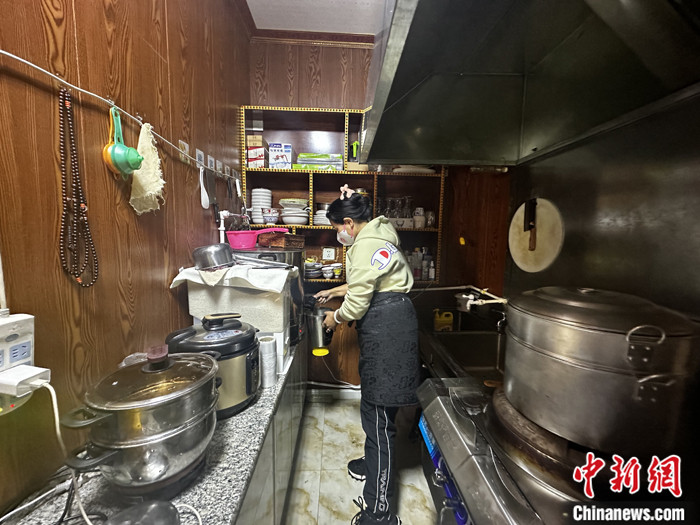 資料圖為長江源村的一家藏餐吧內(nèi),店主李新財(cái)?shù)钠拮釉诿β怠?中新社記者 李雋 攝