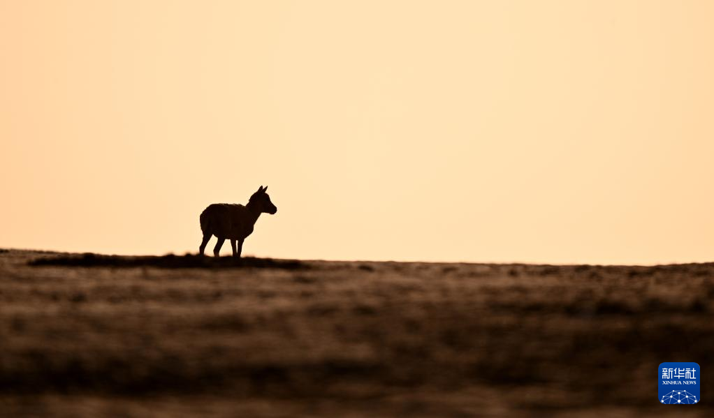 一只藏羚羊在可可西里卓乃湖區(qū)域活動(6月17日攝)。新華社記者 張宏祥 攝