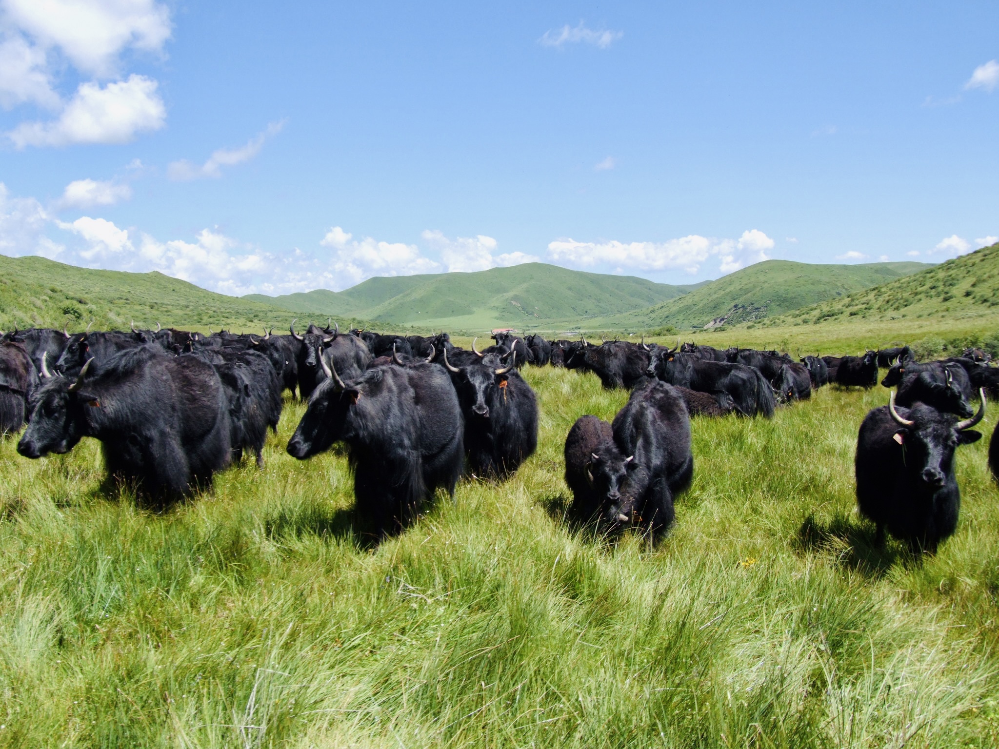 牦牛在草原上吃草。紅原縣委宣傳部供圖
