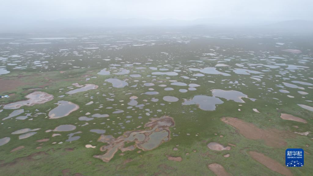 大小湖泊星羅棋布的當(dāng)曲濕地(7月24日攝,無人機照片)。新華社記者 劉詩平 攝