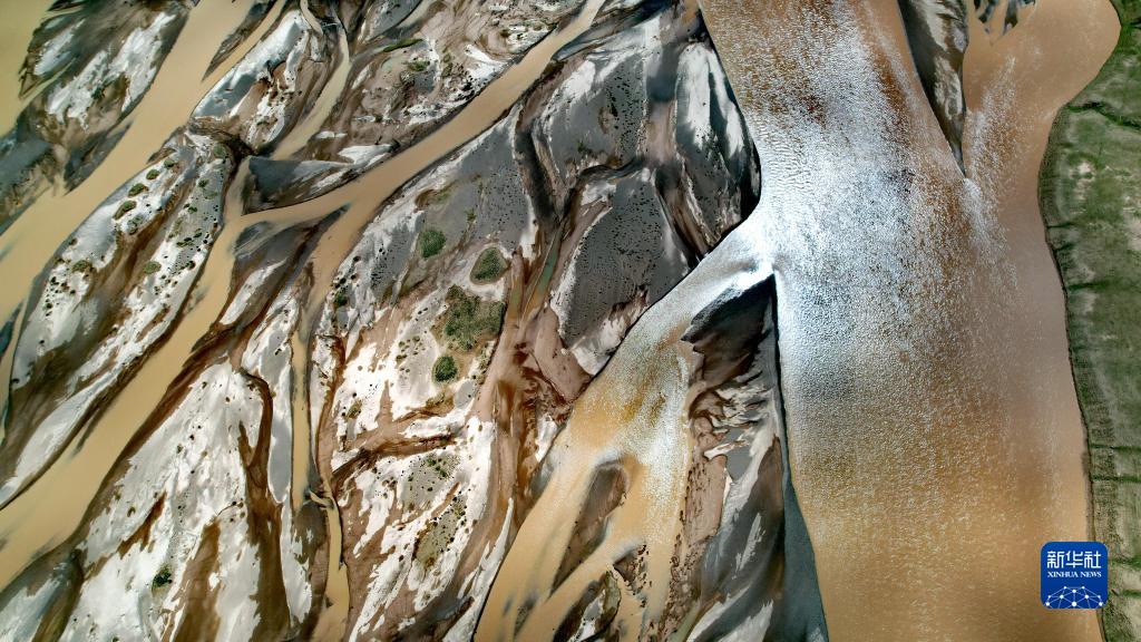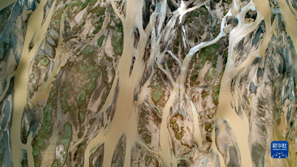 在沱沱河與當(dāng)曲匯合處的囊極巴隴拍攝的辮狀河道局部(7月26日攝,無人機(jī)照片)。新華社記者 劉詩平 攝