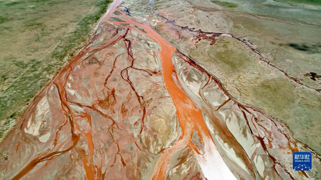 在沱沱河與當(dāng)曲匯合處的囊極巴隴拍攝的辮狀河道(7月27日攝,無人機(jī)照片)。新華社記者 劉詩平 攝