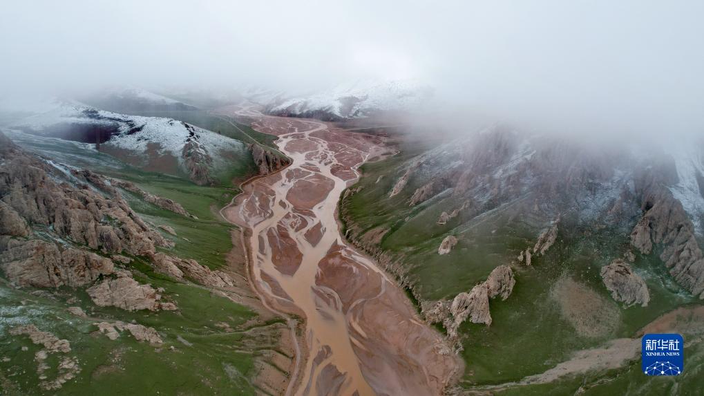通天河支流的辮狀河道(7月26日攝,無人機(jī)照片)。新華社記者 劉詩平 攝