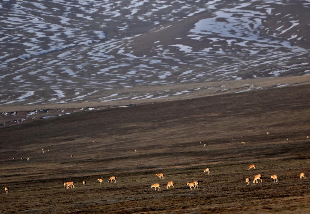 藏羚羊在卓乃湖附近活動(6月18日攝)。新華社記者 張宏祥 攝