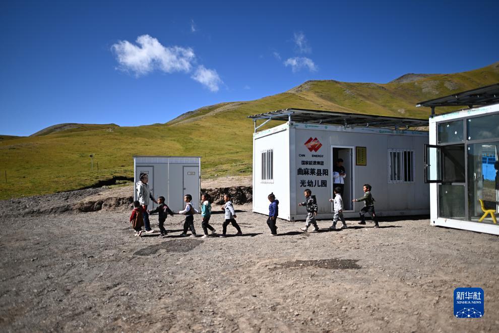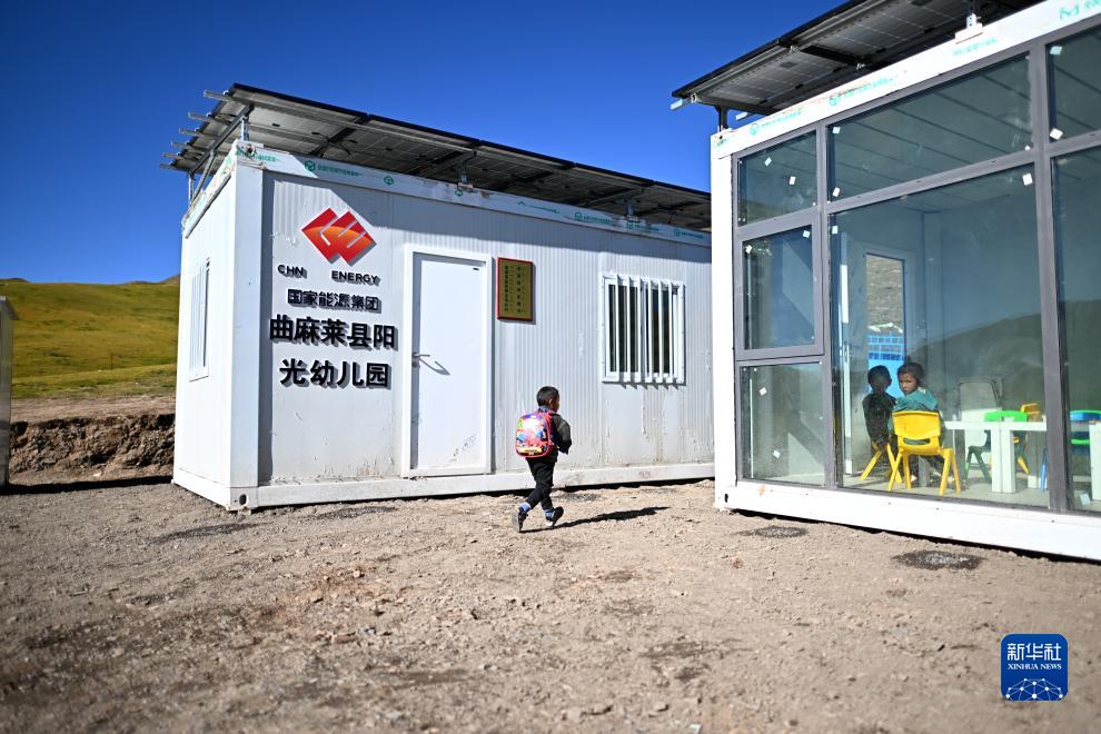 作為曲麻萊縣定點(diǎn)幫扶單位,國家能源集團(tuán)自2022年起累計(jì)投入1350萬元,在曲麻萊縣建設(shè)15所陽光幼兒園。陽光幼兒園為集裝箱式房屋,配備屋頂離網(wǎng)儲能光伏系統(tǒng),可以滿足供暖、照明等需求。幼兒園招收居住在周邊牧場的兒童,讓孩子們在離家不遠(yuǎn)處就能接受學(xué)前教育。